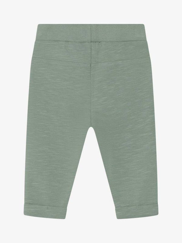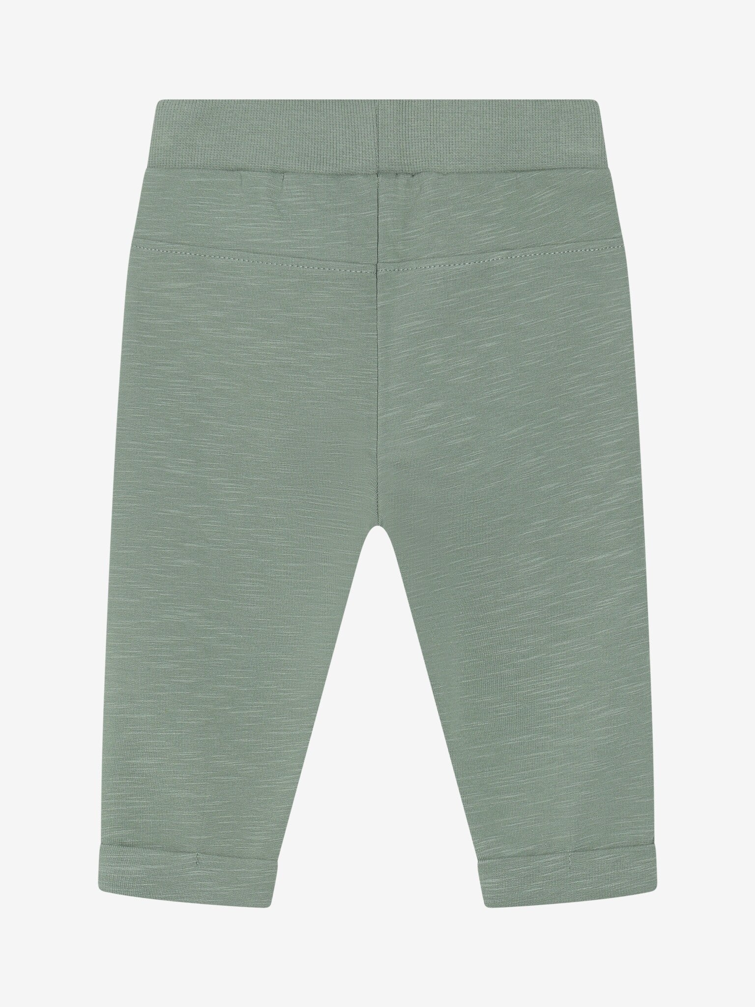 Joggebukser fra Minymo. Buksene har et ensfarget, melert mønster. De har elastikk i midjen og er brettet opp ved ankelen. I tillegg har de dekorative knapper og to frontlommer. Laget med sertifisert økologisk bomull. Sertifisert i henhold til GOTS - økologisk CERES-0366, Sertifisert i henhold til OEKO-TEX® STANDARD 100 Sert. nr. 2276-364 DTI