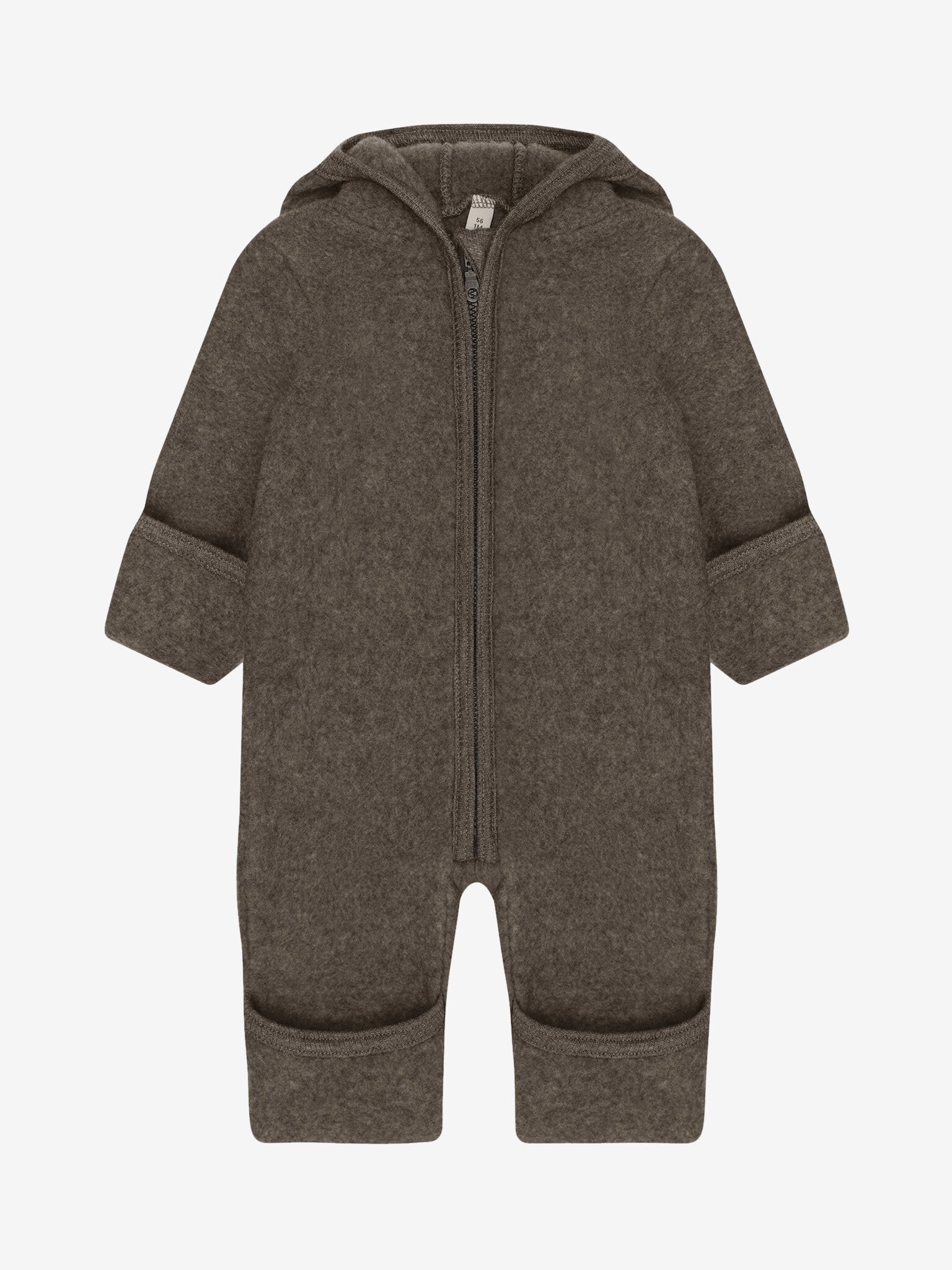 Materiale Sammensetning: 100% ull Smart varm Huttelihut barnevogndrakt i ullfleece. Huttelihut barnevogndrakt har en fast hette med en rund hodeform og søte små ører på toppen. Barnevogndrakten har lange ermer og ben med praktiske folder opp til størrelse 80, for å holde små føtter og hender varme. I alle åpninger er det ribbede kanter. Barnevogndressen åpnes foran med en skjult glidelås med hakebeskyttelse. Drakten er laget av merinoull. 2276-364® DTI Dette produktet er laget av merinoull, og det er WOOLMARK – Pure New Wool sertifisert under lisens nm:0030001353 av THE WOOLMARK COMPANY. Dette produktet er laget av ull, kjent for sin holdbarhet hvis det tas godt vare på: Vask det bare når det er nødvendig. Velg et skånsomt ullvaskemiddel. Ikke bruk tøymykner. Velg alltid den skånsomme ullvaskesyklusen, og vreng plagget. Bruk en lav sentrifugesyklus. Form om mens den er våt. For håndvask, bruk lunkent vann og unngå vridning; Trykk forsiktig med et håndkle for å fjerne overflødig vann. Legg flatt på et håndkle for å tørke - ikke legg på en radiator eller i en tørketrommel. Kan bestille inn Str: 56,62,68,74,104 3 Farger: *Brun Melert *Mahogni rose *Camel Melange Pris: 880,-