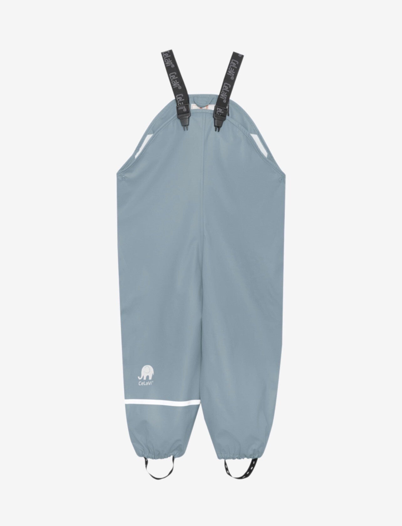 Praktisk og slitesterkt PU-regnsett fra CeLaVi. 100 % vind- og vanntett med et vanntrykk på 5000 mm. Finnes i flere fargevarianter og har en god passform som passer både gutter og jenter. Regnsettet har mange flotte funksjoner som avtakbar hette med trykknapper, lukking foran med både glidelås og knapper, strikk ved ankler og håndledd, og borrelåslukking ved håndleddet, elastiske støvelstropper og refleksstripe på høyre arm og ben. God passform som gir mange timer med lek på en regnværsdag. Settet er tilgjengelig som kjeledress med justerbare elastiske seler (størrelse 70-100) med en elefant og CeLaVi-logo på bryst og ben. I størrelse 110-150, men i noen farger opptil 170, kommer regnbuksene med elastisk linning (størrelse 110-140) og kun CeLaVi-logo på bryst og ben.