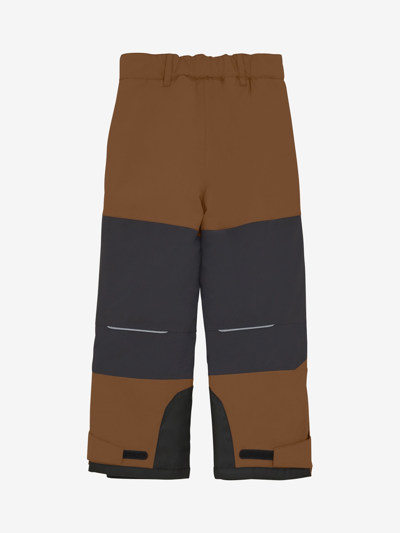 Varme og slitesterke skibukser i pustende, vind- og vanntett materiale, designet for aktiv lek i regn, snø og vind. Buksene har fargeblokkdesign, snøskjermer i benåpningene som holder snøen ute, samt justerbar linning med elastikk for god passform. Lukkes med glidelås og trykkknapp foran. Praktiske lommer og reflekterende detaljer foran og bak øker funksjonaliteten. På innsiden finnes en navnelapp til barnets navn.