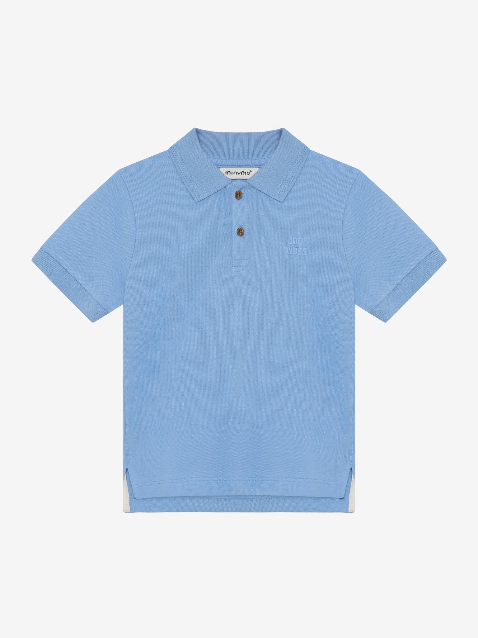 MaterialeSammensetning: 95 % bomull / 5 % elastanEnsfarget polo-t-skjorte fra Minymo. Poloen har en klassisk krage og et mønster på det ene brystet, og lukkes med to knapper.