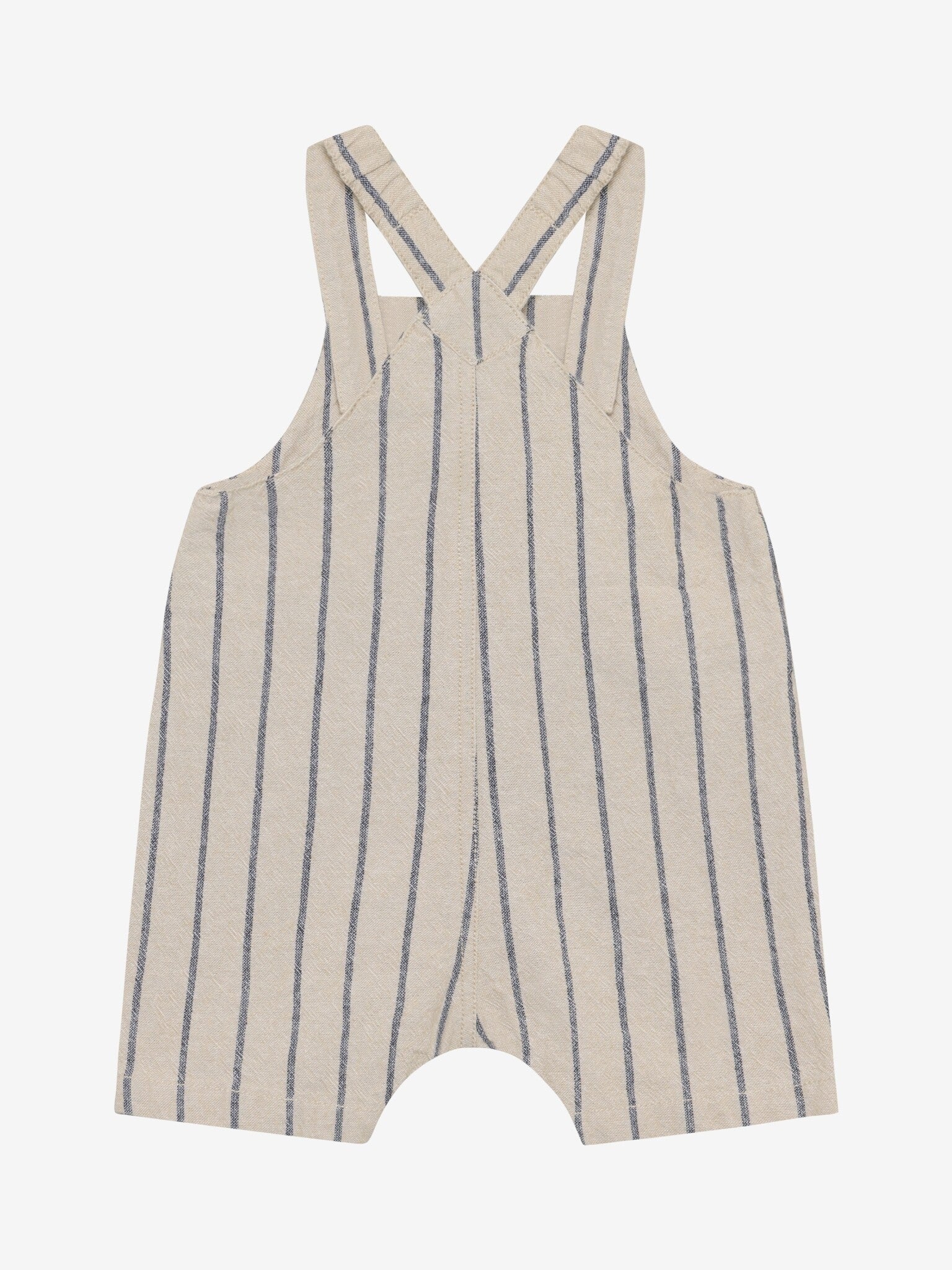 Alt i alt fra Minymo. Overallen har et stripete heldekkende mønster. Den lukkes med knapper foran. I tillegg har den dekorative knapper på sidene.