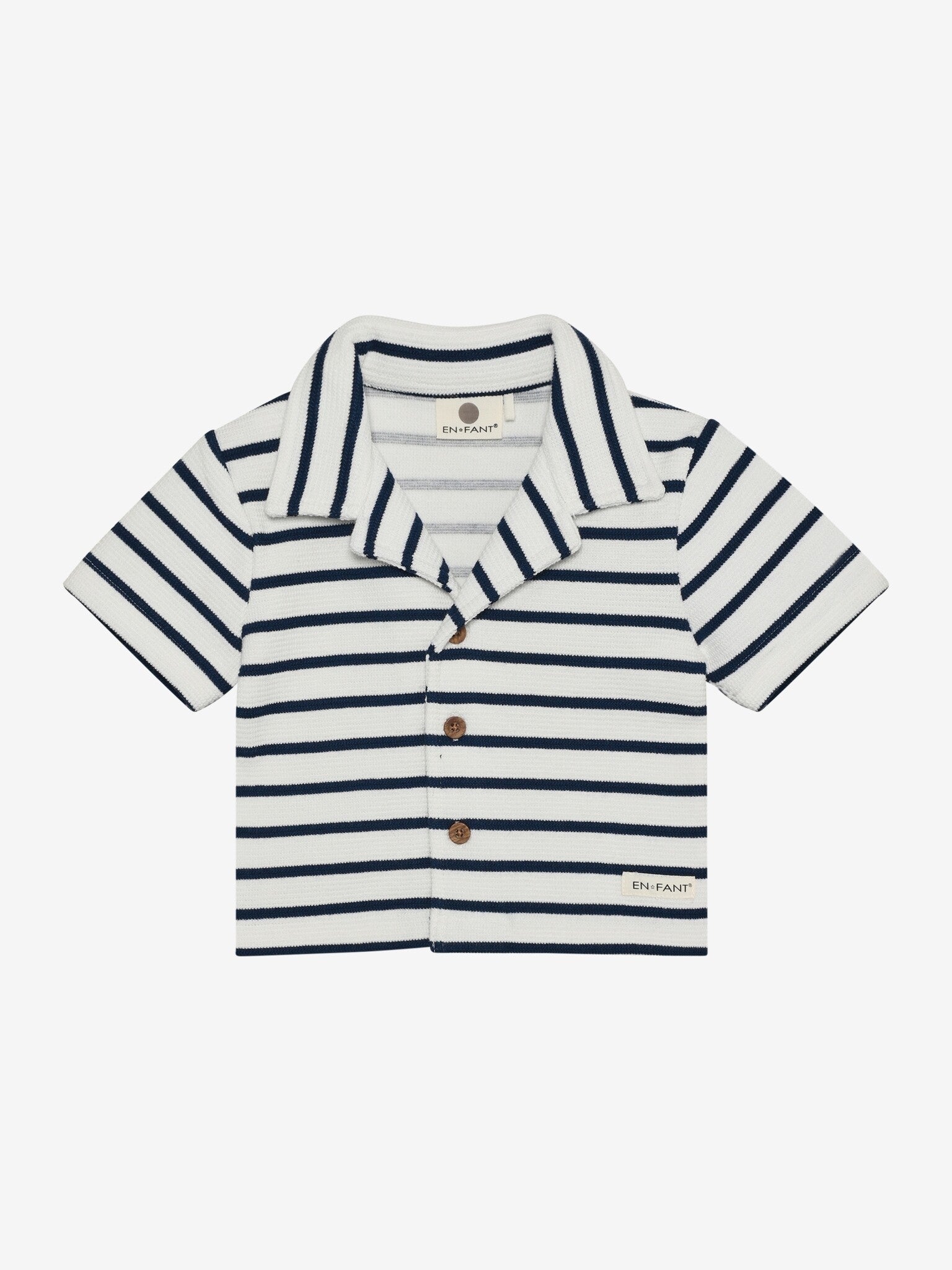 Skjorte med korte ermer fra EN FANT. Denne skjorten har krage og kan åpnes med knapper foran. Skjorten har striper.