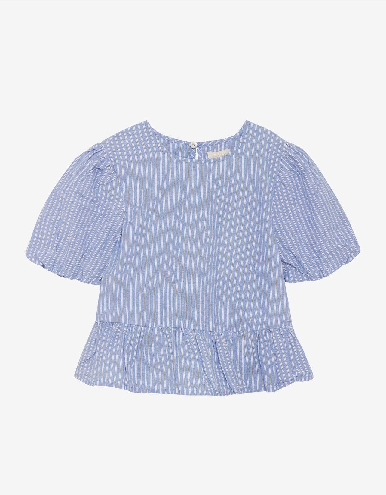 Denne toppen har store ermer med strikk i enden av ermet. Toppen har et lite skjørt med rynker rundt livet. Den kan åpnes i halsen slik at den enkelt kommer over hodet.