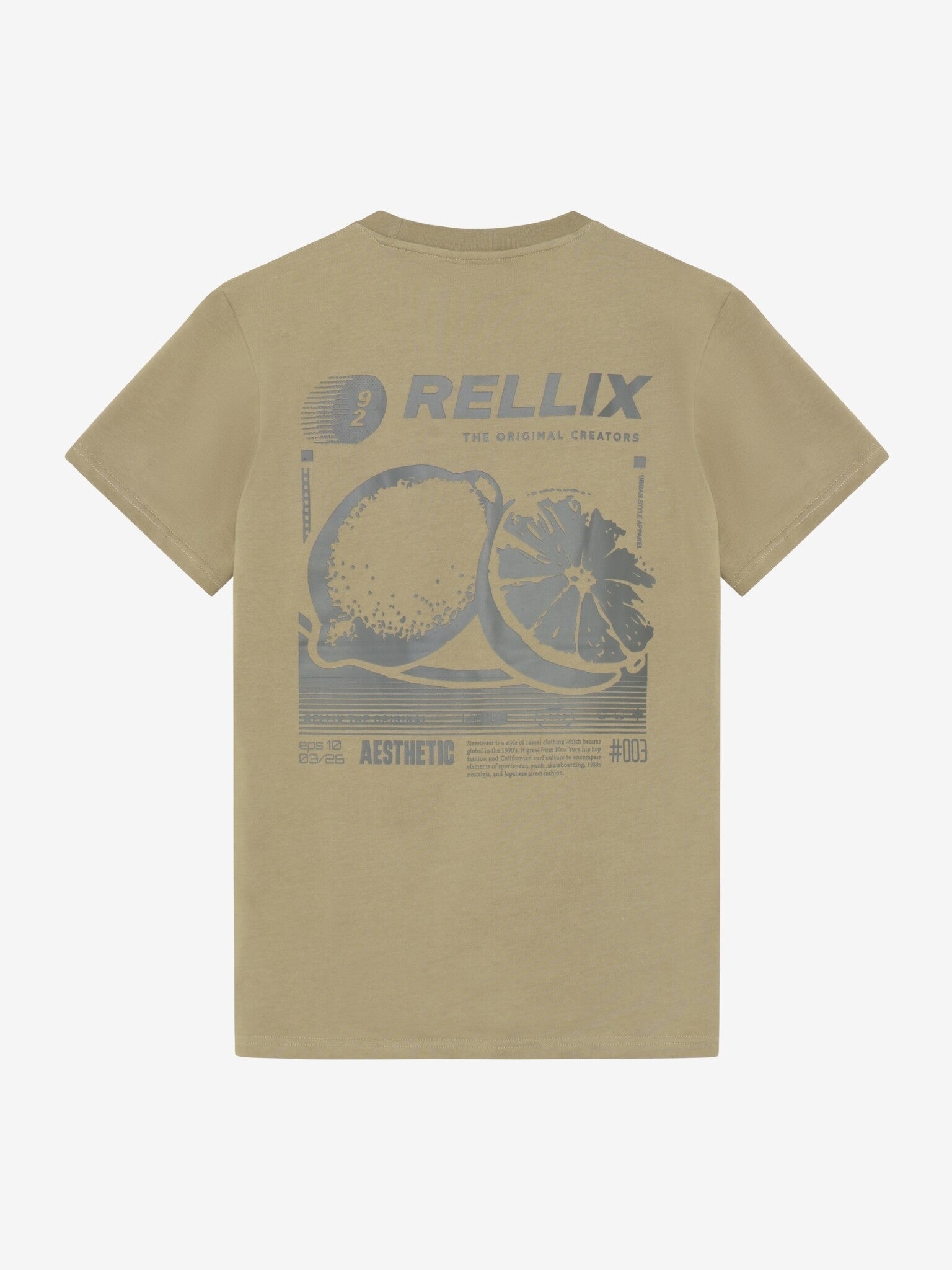 Kortermet t-skjorte med trykk fra Rellix. T-skjorten er designet med et trykk på brystet og et bakmønster