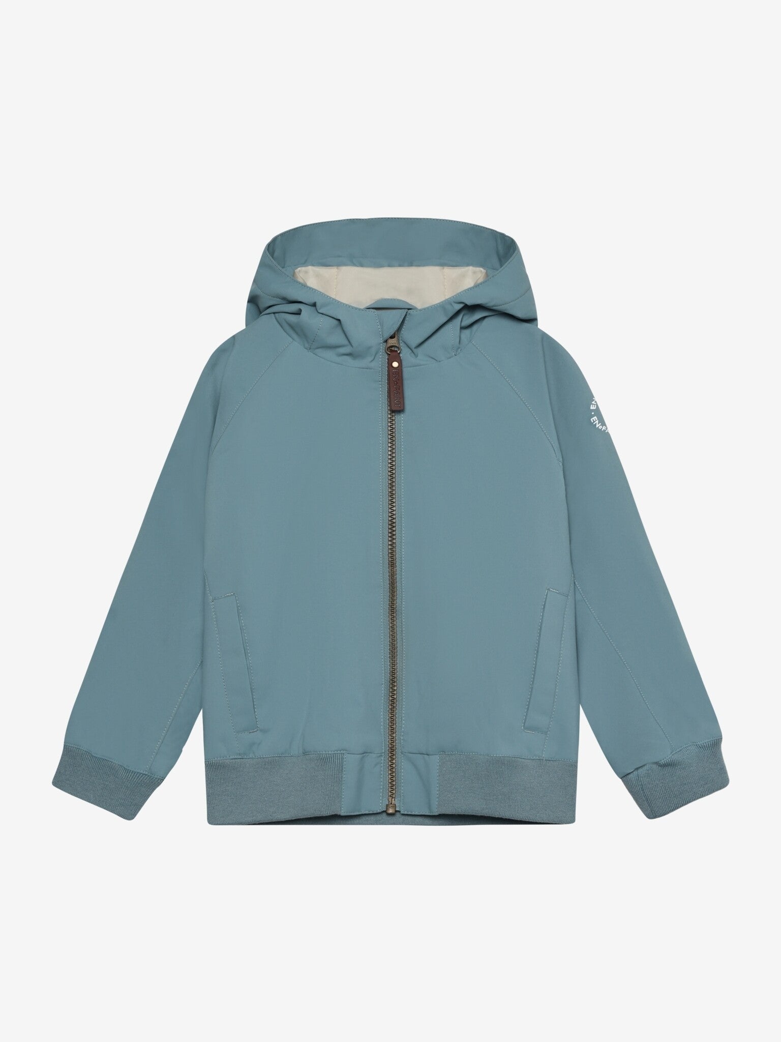 Kul bomberjakke med hette fra EN FANT. Jakken har brede ribbekanter på ermene og midjen. Jakken lukkes med glidelås med hakebeskytter og har lommer på sidene. Jakken er vindtett og vann- og skittavvisende, og har et testet vannkolonnetrykk på 10 000 mm, som kombinerer jakkens funksjonalitet og stil.