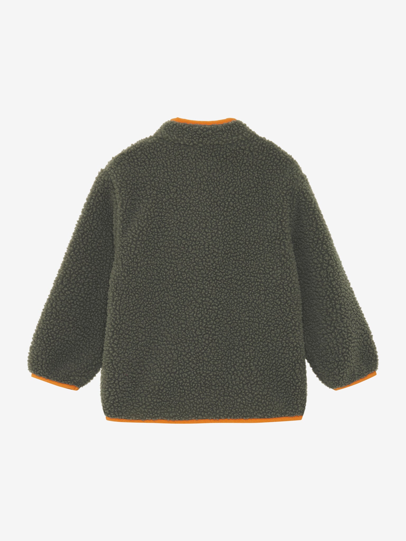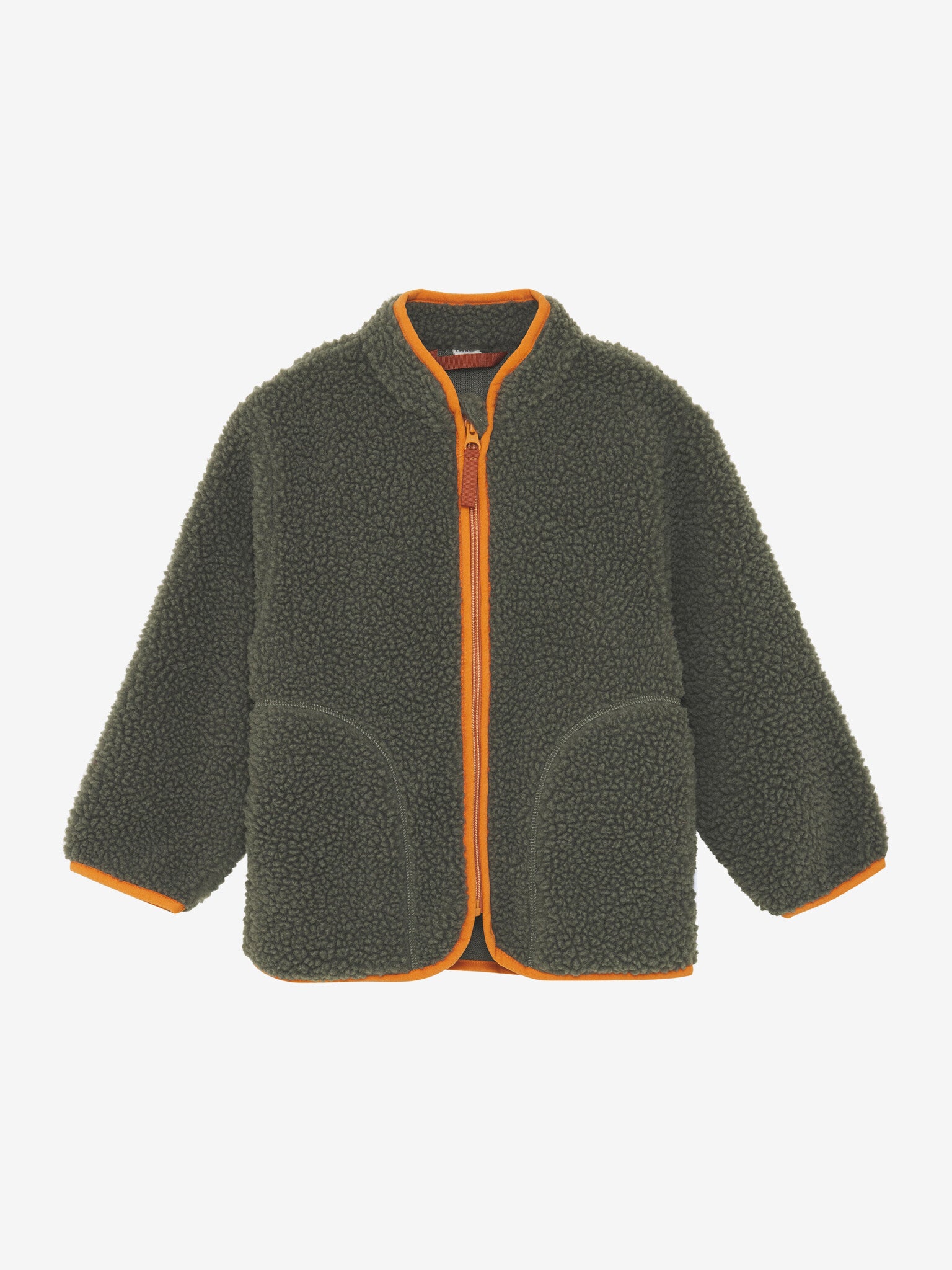 Fleecejakke fra CeLaVi. Lukkes med glidelås og har en høy krage som dekker halsen. Jakken har lommer og kontrastfargede kanter