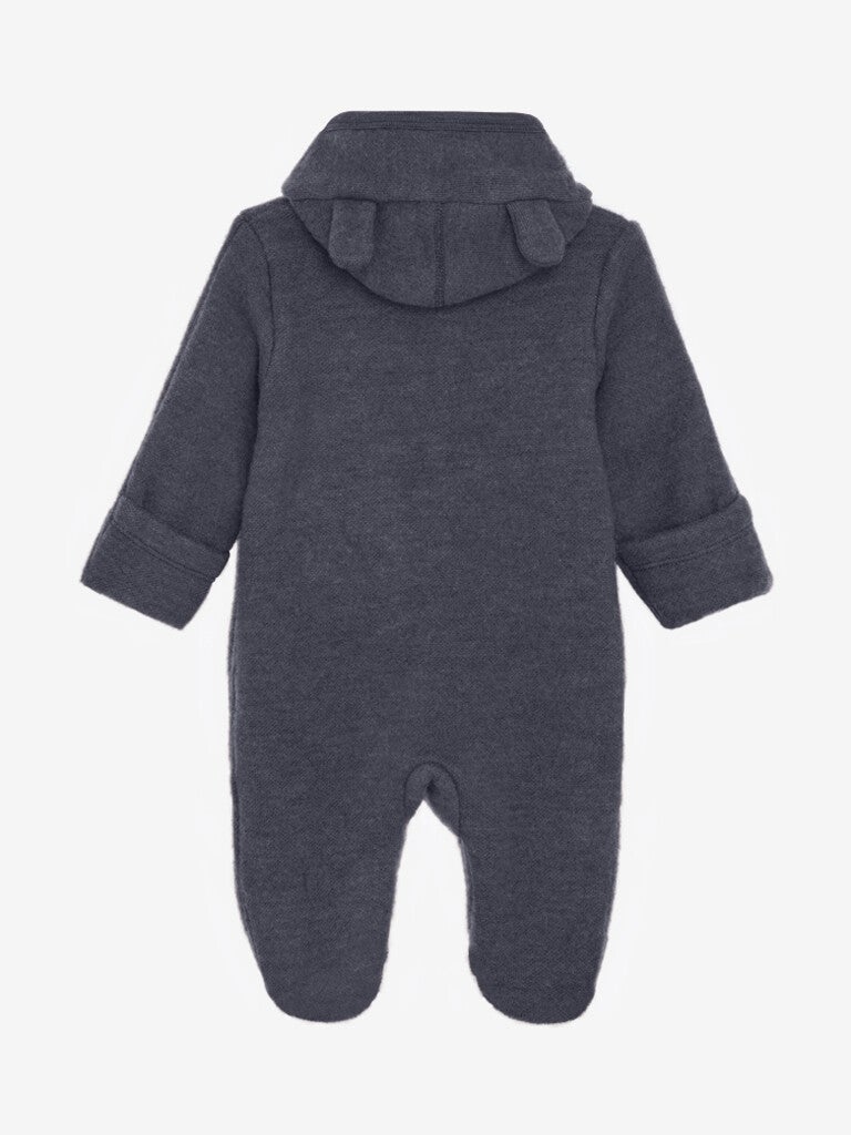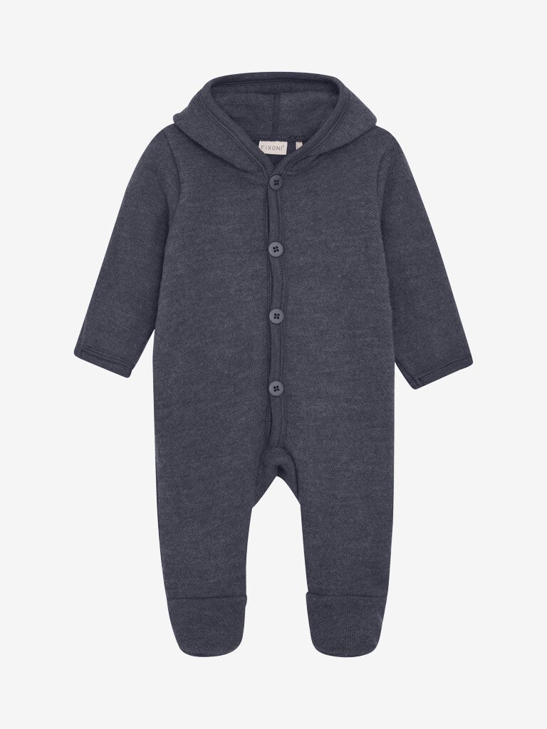 Ullheldrakt fra Fixoni. Drakten er laget av myk børstet ull og har hette med påsydde ører. Knapplukking foran, fold ved ermer og ankler. Sertifisert i henhold til OEKO-TEX® STANDARD 100 Cert. Nr. 2276-364 DTI. Dette produktet er laget av merinoull, og det er WOOLMARK