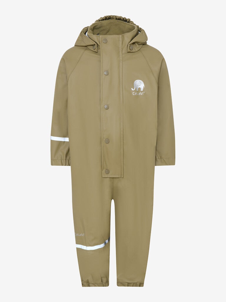 Praktisk regndrakt i ensfarget og slitesterkt PU-materiale. Drakten er vind- og vanntett med teipede sømmer og har et vanntrykk på 5 000 mm. Praktisk strikk rundt håndledd og ankler, og elastiske stropper nederst på bena. Regntøysdressen lukkes foran med glidelås og trykknapper. Refleks på høyre arm og ben. Avtakbar hette med trykknapper.