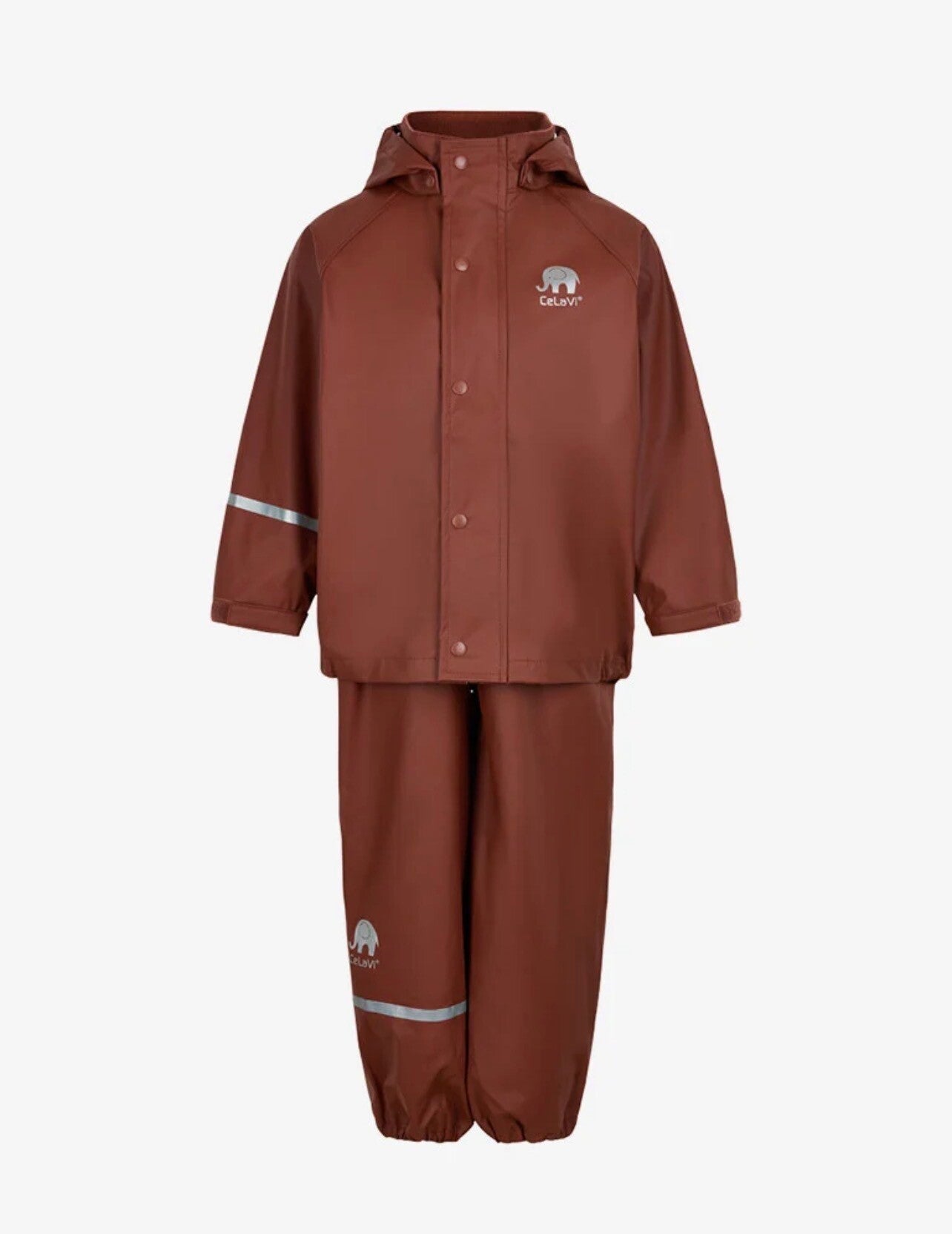 Settet finnes som kjeledress med justerbare elastiske seler (størrelse 70–100) med elefant og CeLaVi-logo på bryst og ben. I størrelse 110–150 (og opptil 170 i enkelte farger) kommer regnbuksene med elastisk linning (størrelse 110–140) og kun CeLaVi-logo på bryst og ben.