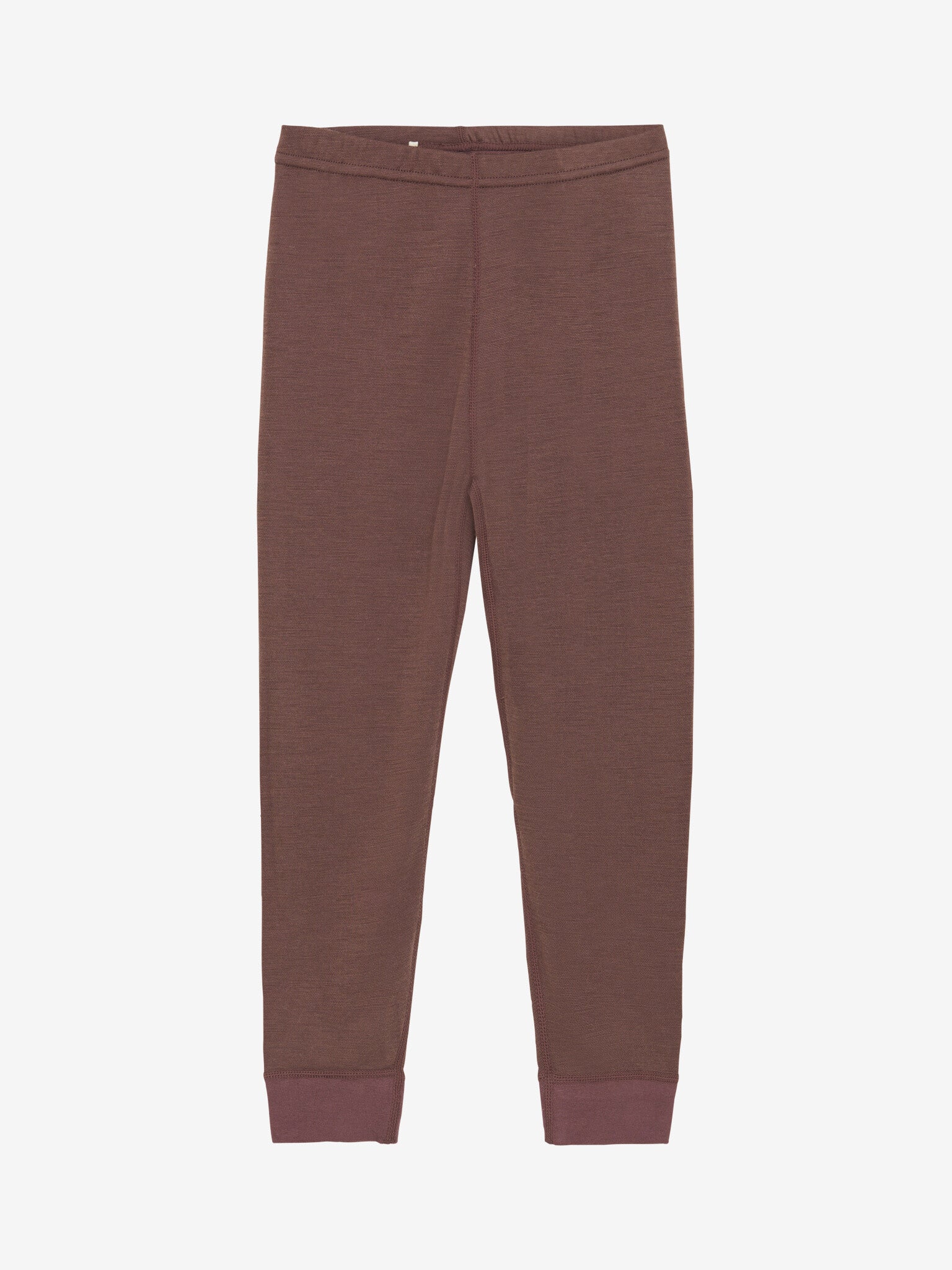 Ensfargede leggings fra CeLaVi. De er laget av superfin merinoull på utsiden og viskose på innsiden, en kvalitet som føles myk og behagelig mot huden. Bindingen består av 100 % viskose. De har praktiske elastikker i livet, noe som sikrer en god og komfortabel passform.