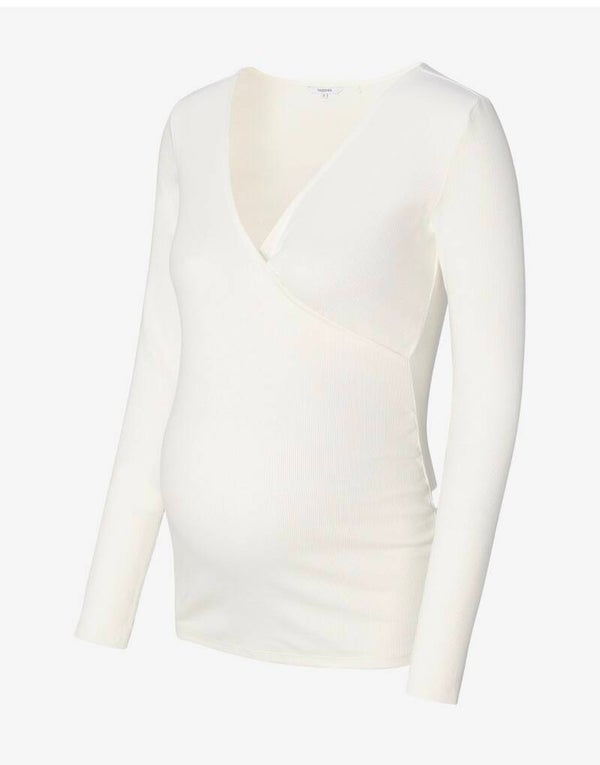 Den langermede Noppies Maternity Essentials Sara-toppen er laget av superelastisk ribbet bomull. Toppen har en dyp V-hals, som betyr at den også passer perfekt for amming. Praktisk!