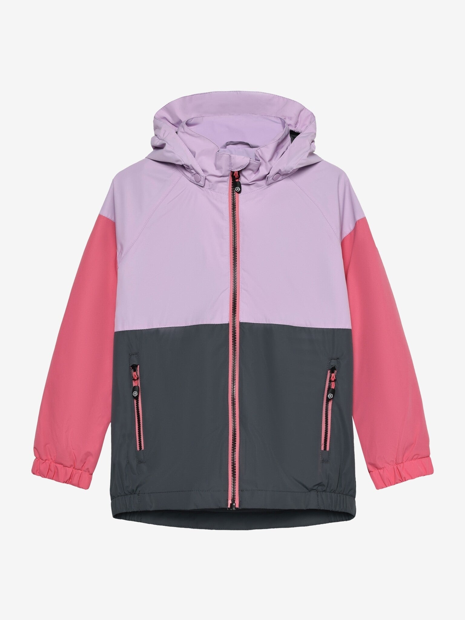 Flerfarget jakke med avtakbar hette fra Color Kids.