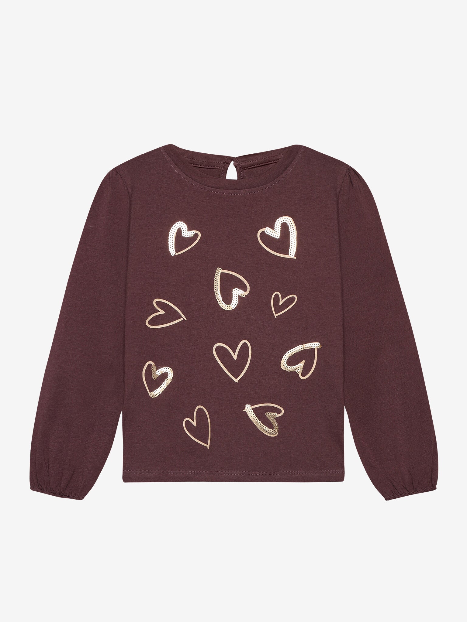 Genser fra Minymo. Genseren er designet med et fronttrykk. Den har elastikk ved ermene og en svak puffeffekt ved skuldrene.