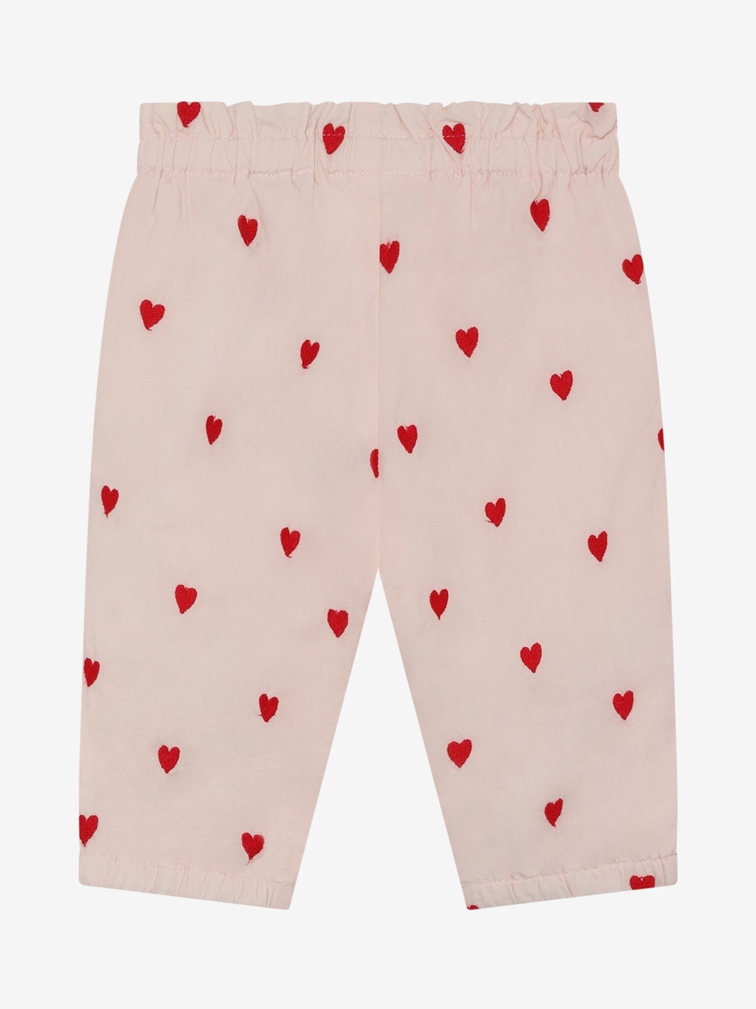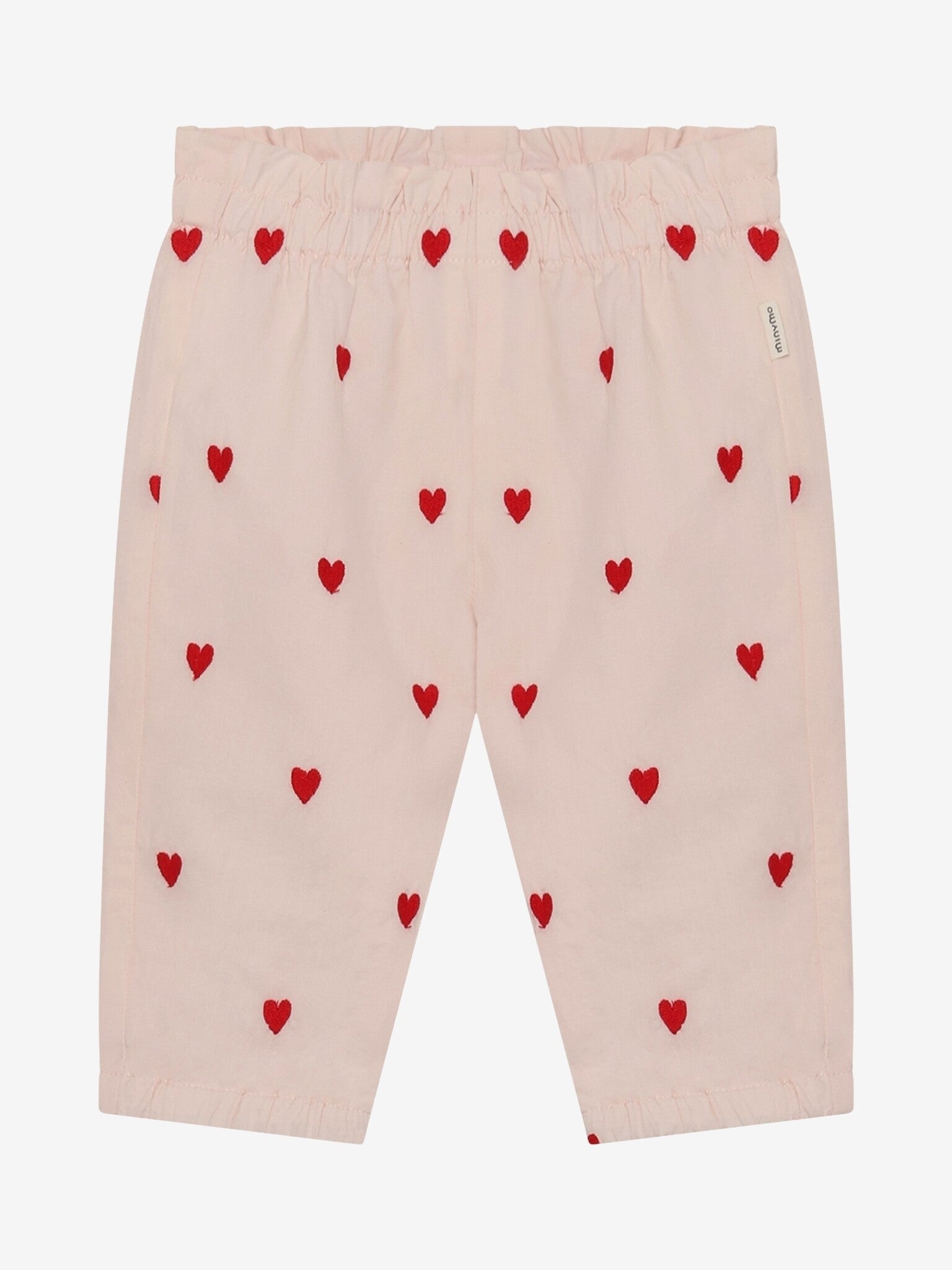 Bukser fra Minymo. Buksene er ensfargede med brodert heltrykk. De har strikk i livet og anklene. Buksene er laget av 100 % bomull.