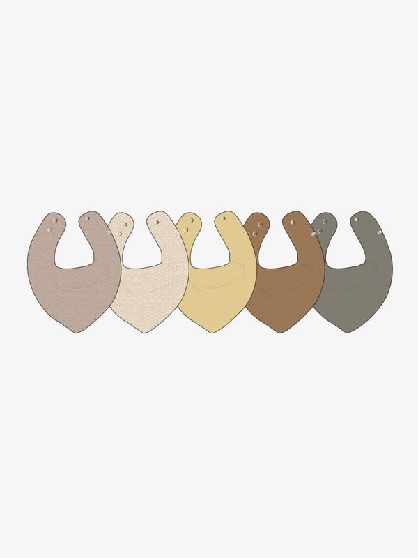 5-paknings bandana-smekke med et vannavstøtende lag inni. Smekken har en knapp lukking.